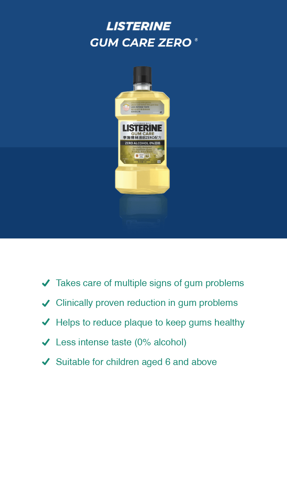LISTERINE kills 99.9% of germs that brushing misses to help prevent bad breath, reduce plaque and gum problems.